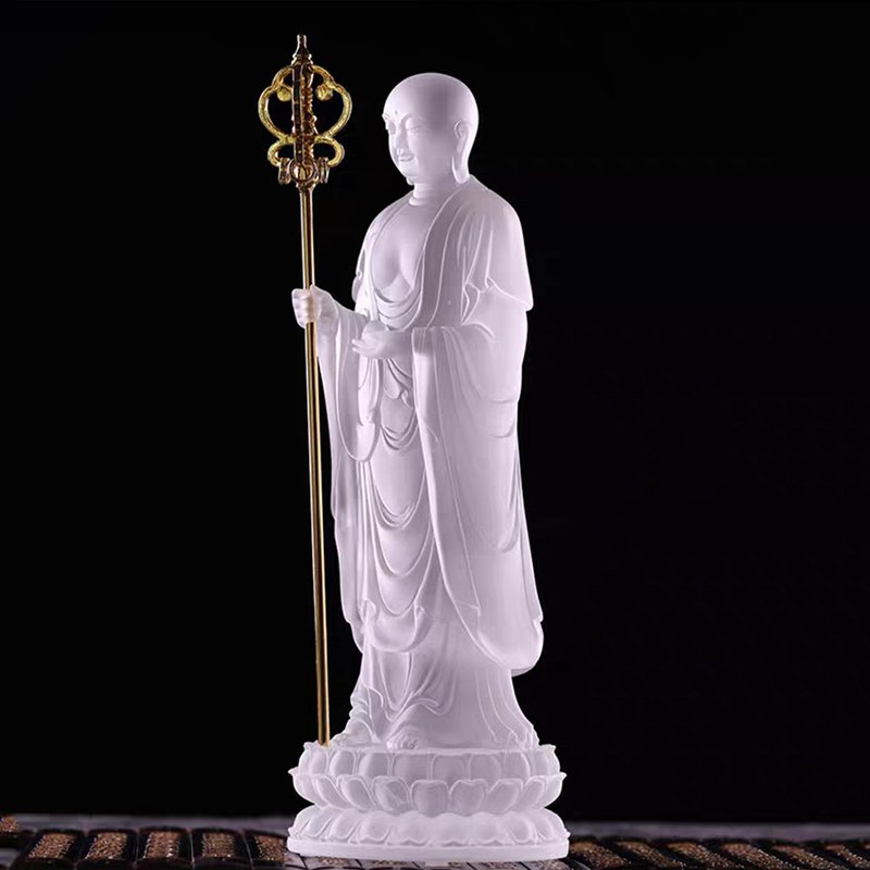 Bodhisattva Ksitigarbha Figure of Buddha Peace Auspice Buddha Statue Crystal Sculpture Dizang Buddhist