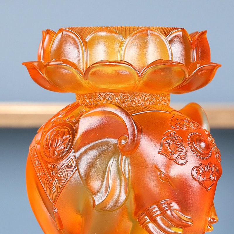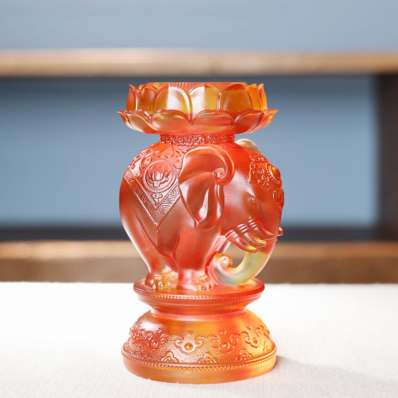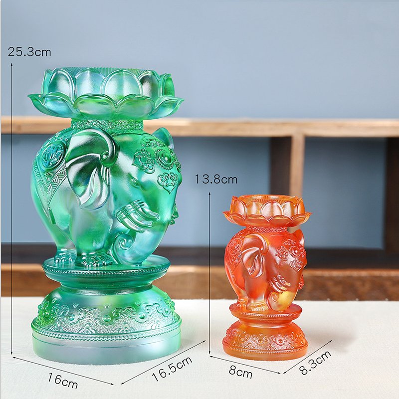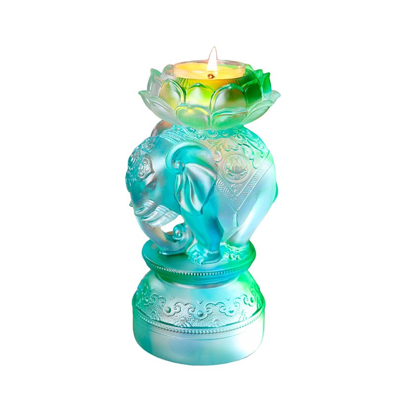 Crystal Lucky Elephant Candle Holder Luxury Colored Glaze Animal Figurine