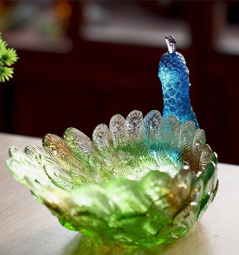 Large Peacock Fruit Tray Creative European Style Home Decor Crystal Snack Bowl Desktop Ornament