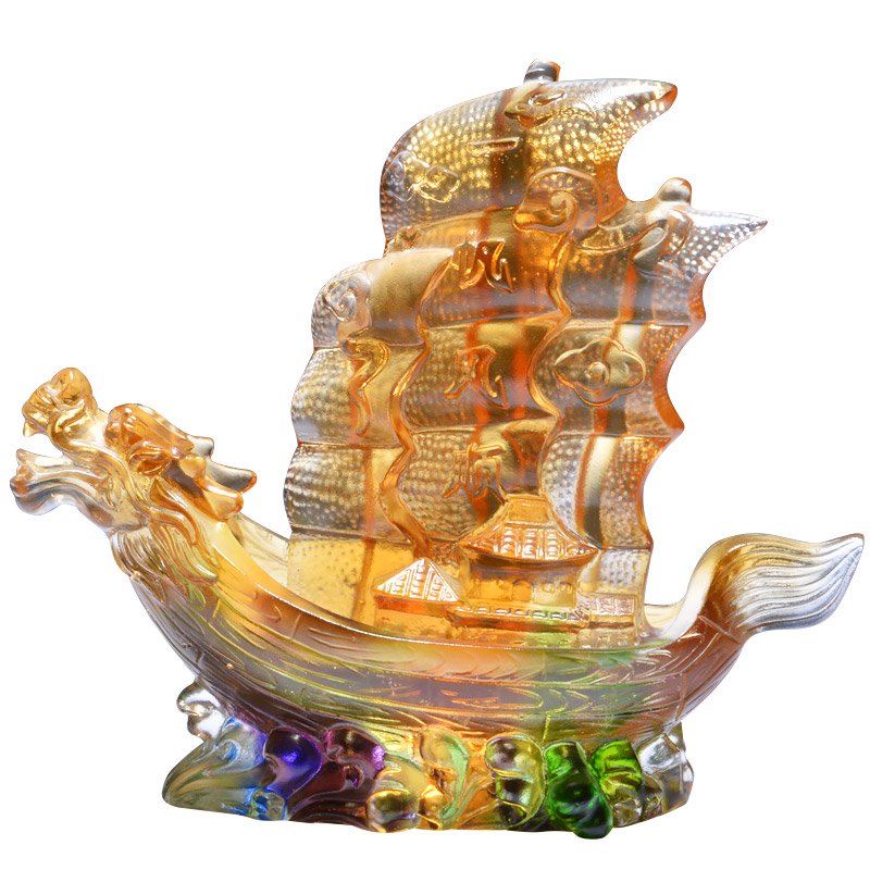Luxury Colored Glaze Sailboat Lucky Figurine Treasure Ship Fengshui Energy Gifts Smooth Sailing Chinese Dragon Boat